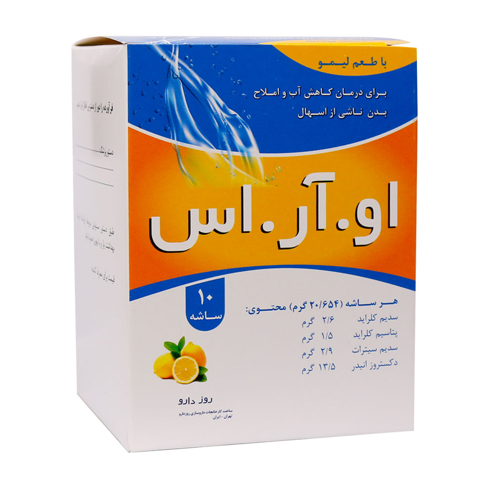او آر اس پودر خوراکی با طعم لیمو 10 عددی ـ روز دارو