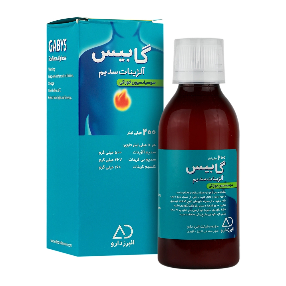 سوسپانسیون خوراکی آلژینات سدیم 200 میل گابیس ـ البرز دارو