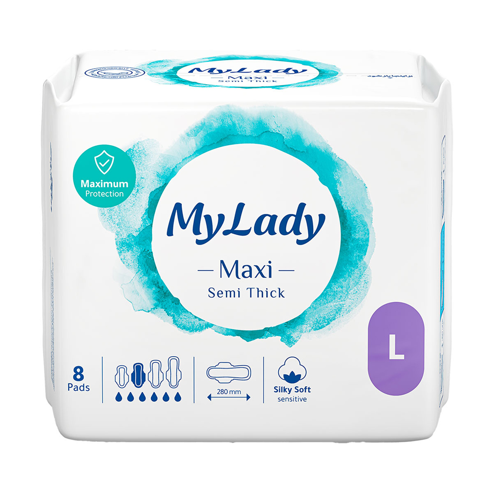 نوار بهداشتی بالدار مکسی نیمه ضخیم به نرمی ابریشم بزرگ پوست حساس 8 عددی ـ مای لیدی