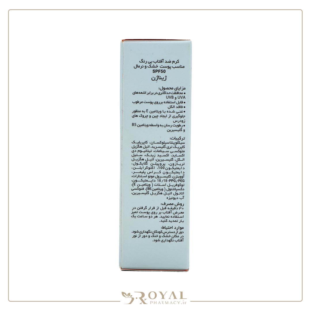 کرم ضد آفتاب بی رنگ پوست خشک و نرمال اس پی اف 50 50 میل ـ ژیناژن
